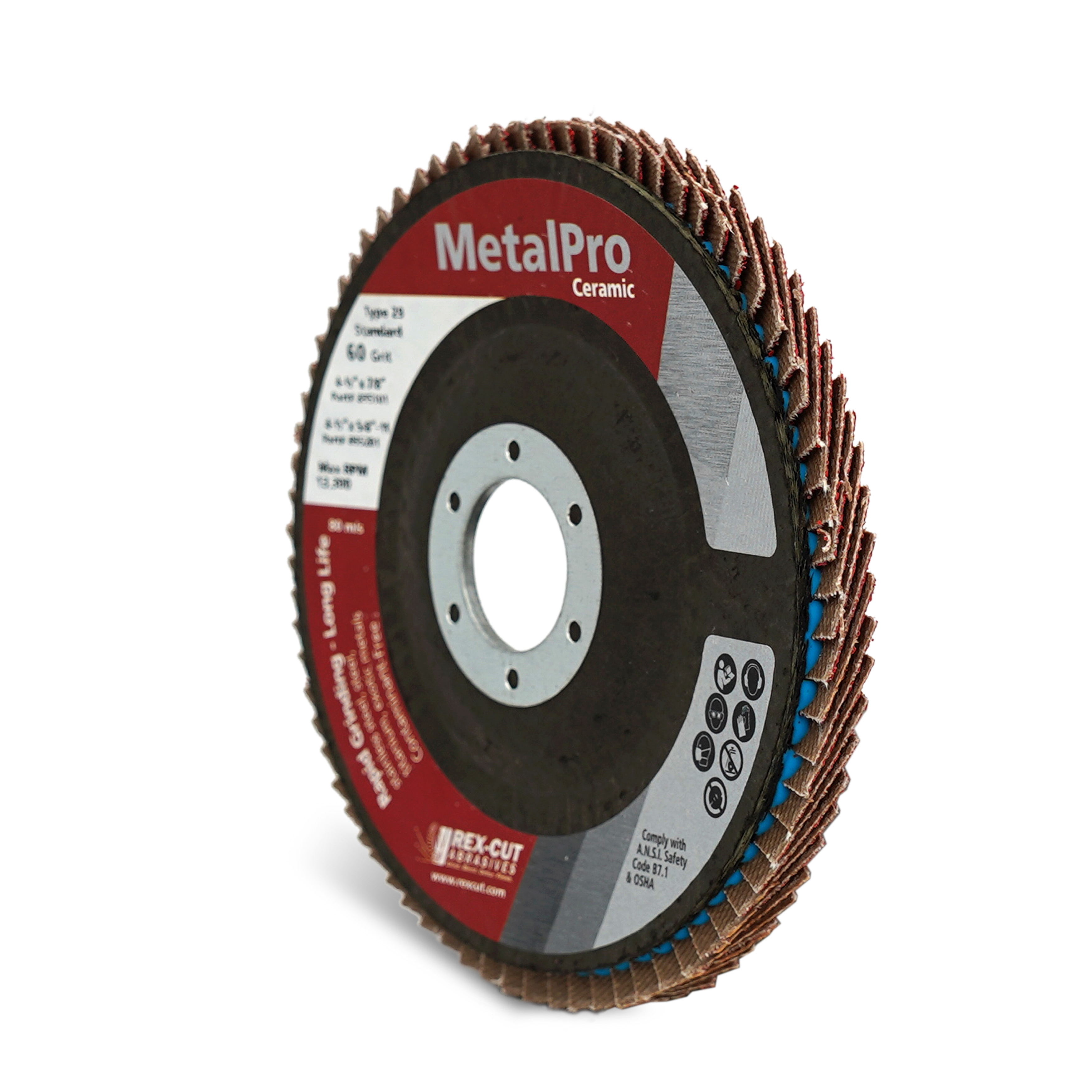 Our new MetalPro Ceramic flap discs are made with a high-quality VSM ceramic material that allows for a faster cut. They provide aggressive stock removal, deliver reliable finishes, and have a durable cotton backing that ensures long product life. MetalPro Ceramic flap discs have up to 2X the life of zirconia alumina and 4X the life of aluminum oxide.